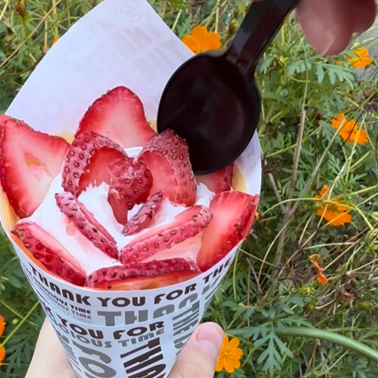 - O社 熱田店1ヶ月後にオープンを控え、緊急でオリジナルスイーツを探していたO社様からのご依頼。熱田神宮目の前の商業施設ということもあり、「幸せを呼ぶブーケ」を織田信長の家紋をイメージした「家紋いちご(クレープ)」にアレンジ! 無事に1ヶ月後のオープンに間に合い、「家紋いちご」はオリジナルスイーツとして評判を呼び、SNSでも話題です。